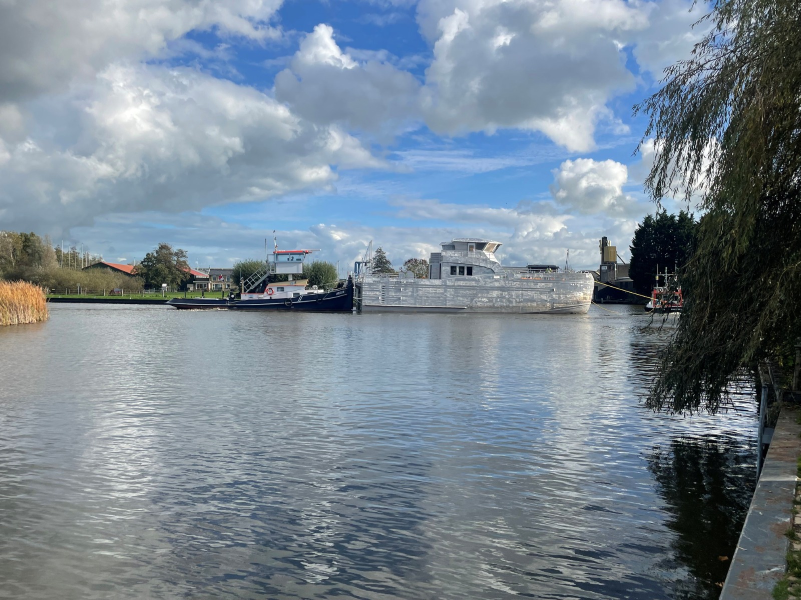 Het casco is gebouwd in Polen en per sleepboot over zee naar Harlingen vervoerd. âš“